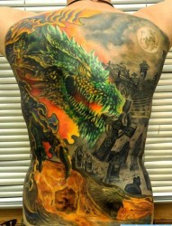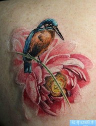 后背唯美漂亮的蜂鸟与花卉纹身图片
