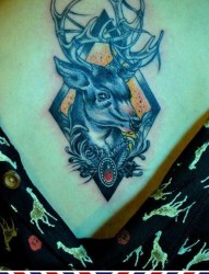 女人后背漂亮时尚的彩色上帝之眼纹身图片