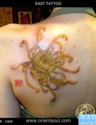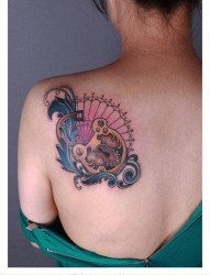 美女肩背唯美漂亮的彩色花卉纹身图片