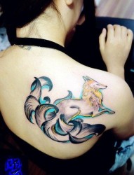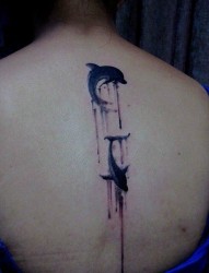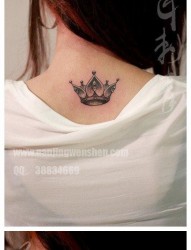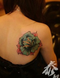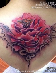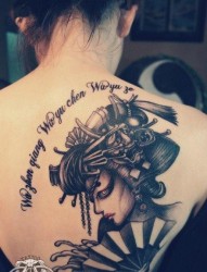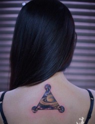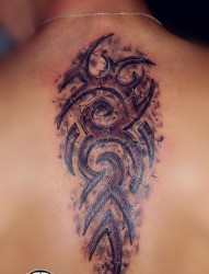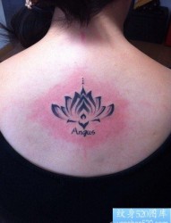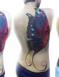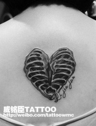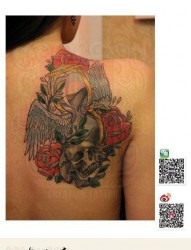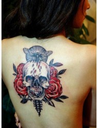 女人后背潮流经典的沙漏与骷髅纹身图片