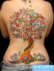 女人后背一幅很酷的一半骷髅一半美女纹身图片