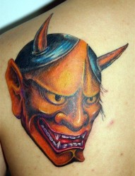 后背时尚经典的一幅骷髅六芒星纹身图片