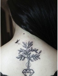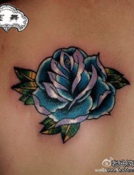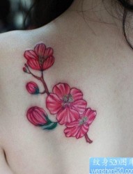 女人后背潮流时尚的玫瑰与骷髅纹身图片