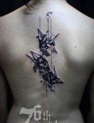 美女后背精美时尚的千纸鹤纹身图片