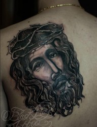 后背上一幅耶稣纹身图片