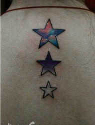 女人后背潮流的星空五角星纹身图片