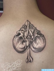 纹身520图库推荐一幅颈部爱心骷髅纹身图片