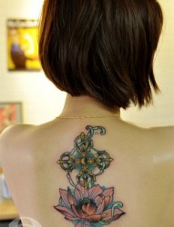 纹身520图库推荐一幅女人背部莲花纹身图片