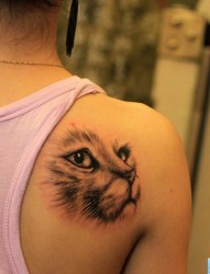 一幅背部猫咪纹身图片由纹身520图库推荐