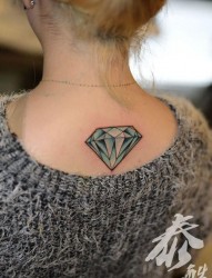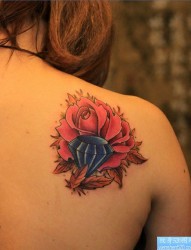 纹身520图库推荐一幅背部玫瑰花钻石纹身图片