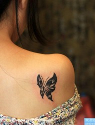 一幅女人背部蝴蝶纹身图片由纹身520图库推荐
