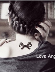 纹身520图库推荐一组女人背部小清新蝴蝶结纹身图片