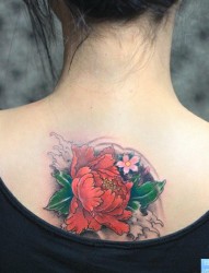 一幅背部牡丹花纹身图片由纹身520图库推荐