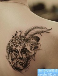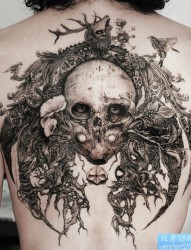一幅女人背部骷髅头翅膀纹身图片由纹身520图库推荐
