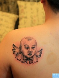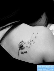 背部蒲公英字母纹身图片由纹身520图库推荐