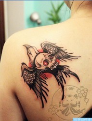纹身520图库推荐一幅女人背部老鹰纹身图片