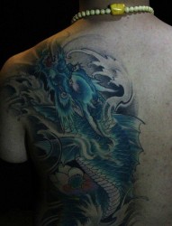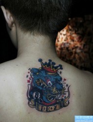 一幅彩色背部唐狮子纹身图片由纹身520图库推荐