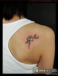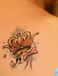 一幅女人肩部蝴蝶结皇冠字母文身图片由刺青店推荐
