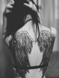 背部羽毛翅膀纹身图片由纹身520图库推荐