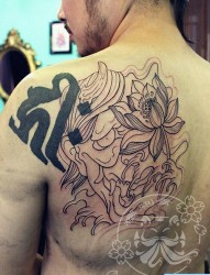 一幅女人背部莲花文身图片由纹身520图库推荐