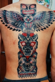 背部卡通般的黑白幻想世界巫师和龙纹身图案
