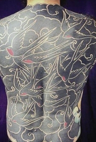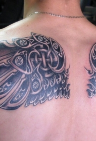 背部有趣的黑色翅膀与凯尔特符号纹身图案