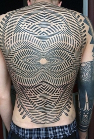 背部巨大的骷髅花朵恐怖风格纹身图案