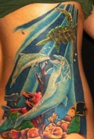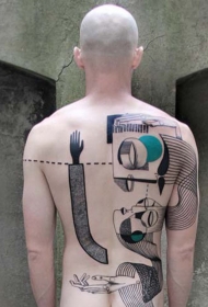 背部华丽的黑色航海鱿鱼和船舶纹身图案