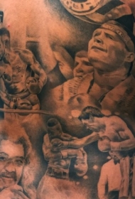 非常逼真黑白拳击主题人物肖像满背纹身图案