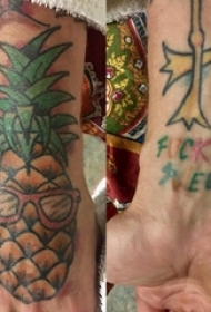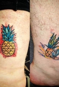 小腿对称纹身 男生小腿上彩色的菠萝纹身图片