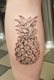 欧美小腿纹身 男生小腿上创意的菠萝纹身图片