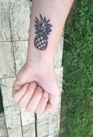 极简线条纹身 女生手腕上黑色的菠萝纹身图片
