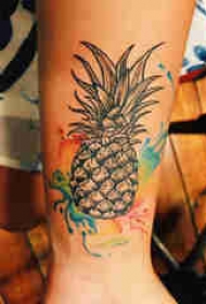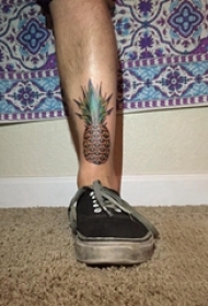 小清新植物纹身 男生小腿上彩色的菠萝纹身图片