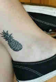 植物纹身 女生脚踝上黑色的菠萝纹身图片