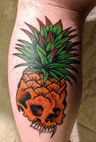 骷髅纹身 男生小腿上菠萝和骷髅纹身图片