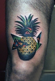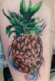 纹身大腿男 男生大腿上彩色的菠萝纹身图片