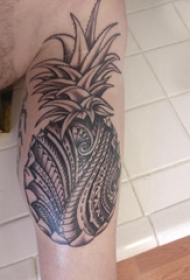 抽象线条纹身 男生小腿上黑色的菠萝纹身图片