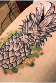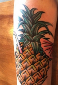 植物纹身 男生手臂上彩色的菠萝纹身图片