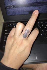 纹身小巧 女生手指上黑色的菠萝纹身图片