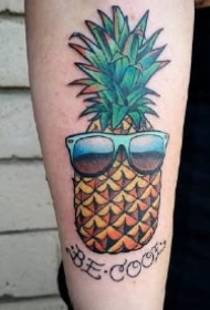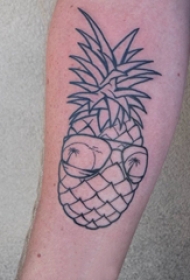 极简线条纹身 男生手臂上戴眼镜的菠萝纹身图片