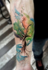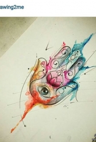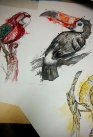 欧美泼墨鹦鹉彩色纹身图案手稿