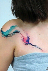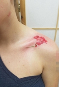 女生肩部彩绘渐变植物纹身素材文艺花朵纹身图片