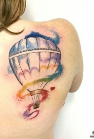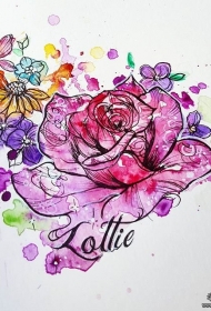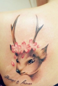 肩部唯美的小鹿花朵字母彩色纹身图案