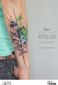 小臂泼墨彩色树纹身图案