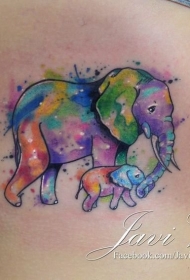 大臂彩色泼墨大象纹身图案