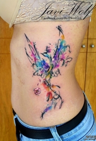 侧腰彩色泼墨凤凰纹身图案