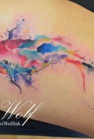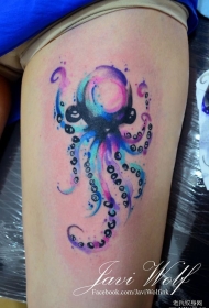 大腿彩色泼墨章鱼纹身图案