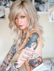 纹身美女的彩色花臂纹身