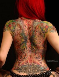 美女背后大气的彩色纹身