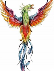 纹身覆盖,彩色朱雀